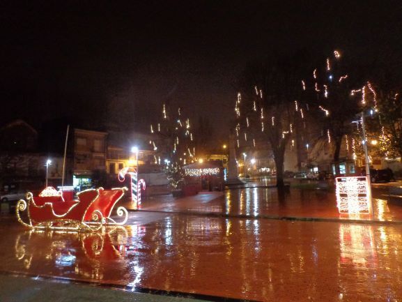 Sur la place tous les chalets étaient fermés et visiblement le sapin avait un soucis de lumière mais ça a été vite arrangé .... nous sommes allés boire un chocolat chaud dans une pastelaria devant le tunnel afin de ne pas rater le spectacle (d'ailleurs nous sommes sortis sans payer, juste en regardant la serveuse au moment où la musique a commencé, elle nous a fait signe de la main "allez-y" ... vous reviendrez payer après lolll j'adore ce pays pour la confiance qu'ils font aux gens !!)